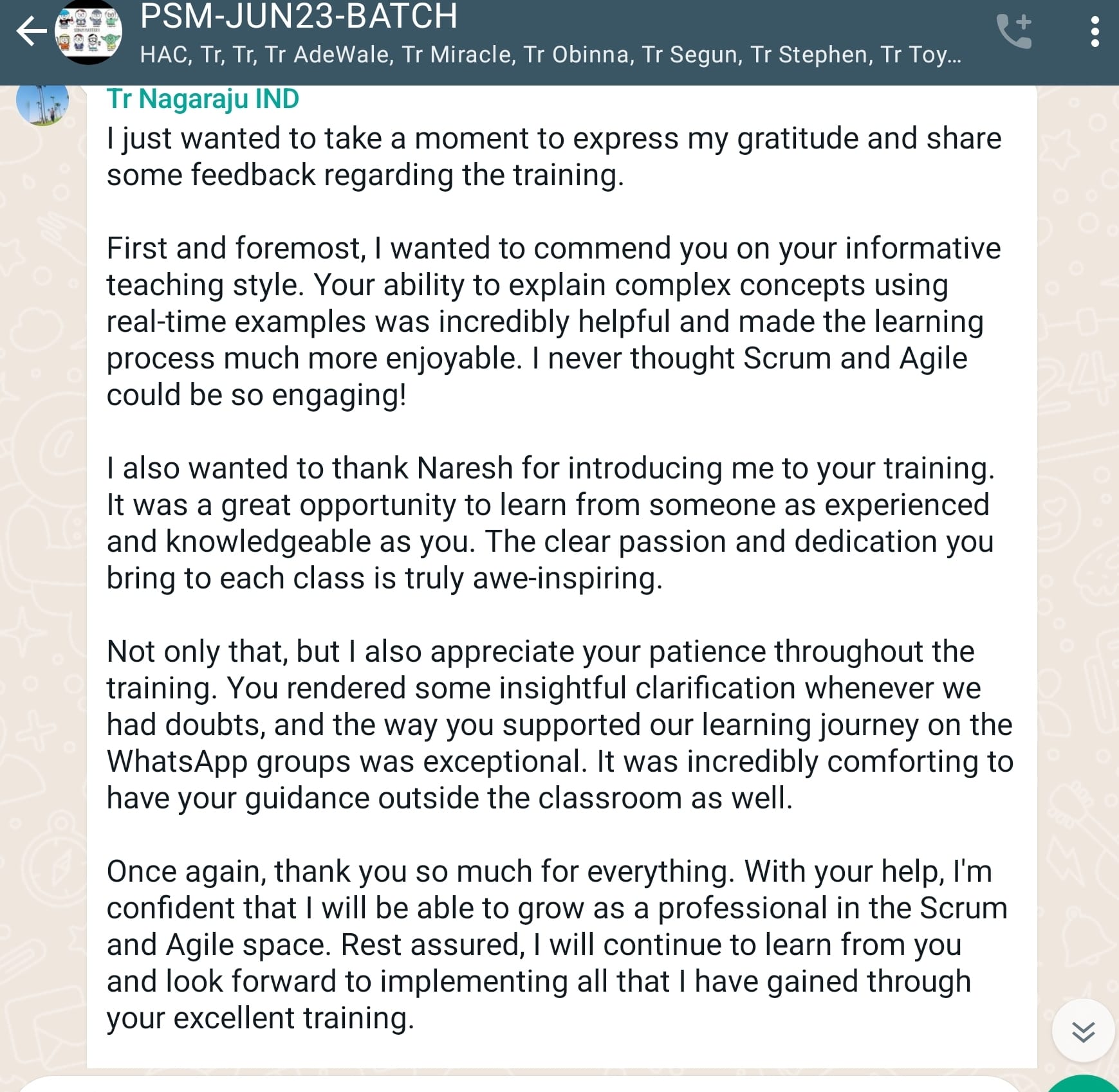 Agile Wave's training on Scrum and Agile methodologies was truly impressive. The content was delivered in a clear and concise manner, making it easy to absorb even for someone new to the concepts. The hands-on practical Scrum Master training was incredibly valuable, giving me the confidence to apply Agile practices in real-world scenarios. I'm grateful for the knowledge gained and highly recommend Agile Wave for anyone seeking top-notch Agile training.